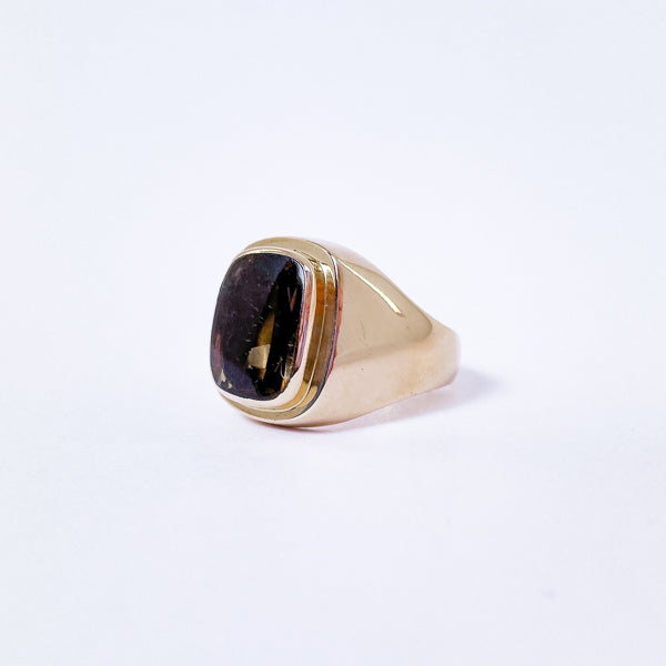 Herrering i 14 karat guld med synt. røgkvarts | Str. 54